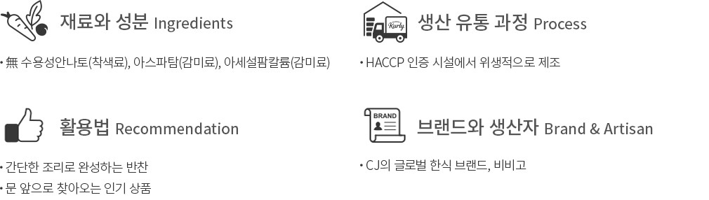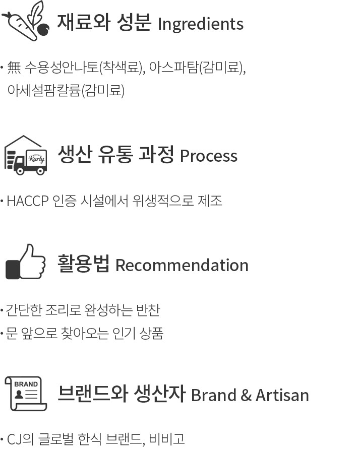 | 알레르기정보 | -오징어,조개류(굴),대두,밀,우유,새우 함유 * 이 제품은 알류,메밀,땅콩,고등어,게,복숭아,토마토,아황산류,호두,닭고기,돼지고기,쇠고기,잣을 사용한 제품과 같은 제조시설에서 제조하고 있습니다. |