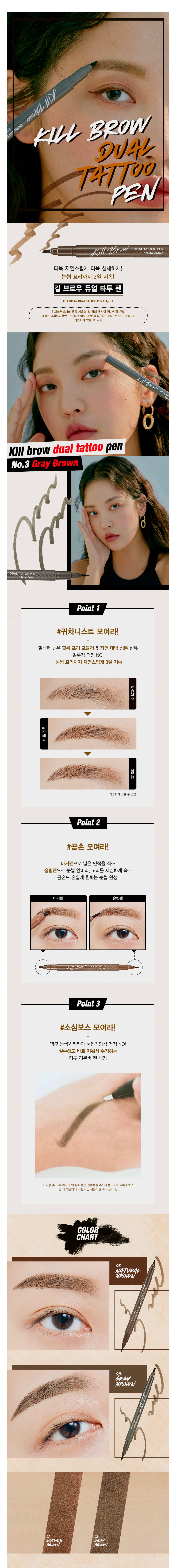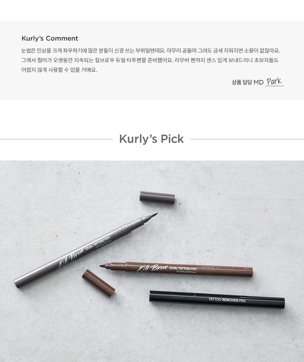 01. 킬브로우 듀얼 타투펜 기획세트 01 내추럴 브라운・구성:①듀얼 타투펜 01 내추럴 브라운,②타투 리무버 펜