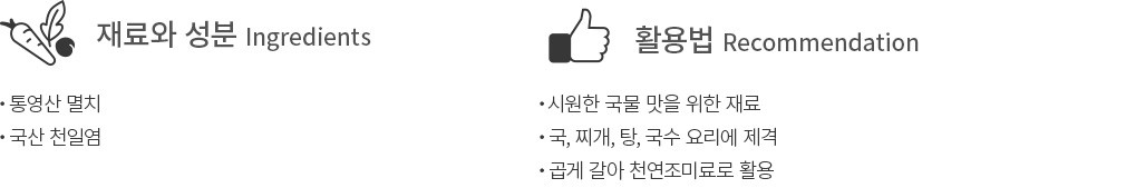 활용팁?국물용 멸치를 우리기 전,팬에 살짝 볶은 후 사용하세요. 비린맛과 잡냄새를 깔끔하게 잡아 줘요.