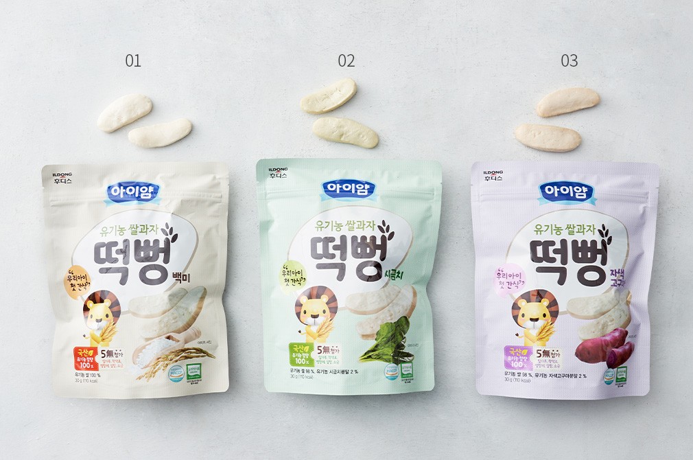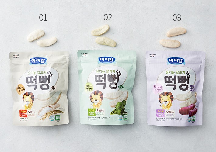 영양과 맛을 모두 고려한 일동후디스의 아이얌 유기농 떡뻥을 소개할게요. 첨가물은 일절 넣지 않고,국산 유기농 쌀로 만들어 더욱 안심할 수 있는 제품이랍니다. 기름에 튀기지 않았기에 담백하면서도 입안에서 사르르 녹는 식감을 자랑하지요. 아이들이 한 손에 꼭 쥘 수 있는 사이즈라,하나씩 쥐고 먹기에도 간편할 거예요. 백미,시금치,자색 고구마 3가지를 준비했으니 아이의 취향에 맞게 선택해 보세요.