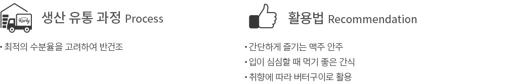 입이 심심한 순간,꺼내 먹는 간식으로 건어물을 빼놓을 수 없죠. 그중에서도 야들야들 보드라운 식감으로 많은 사랑을 받고 있는 반건조한치를 만나보세요. 신선한 한치를 깔끔하게 손질한 뒤,최적의 반건조 과정을 거쳐 담았어요. 수분을 적절히 머금어 촉촉하고 식감이 더욱 쫄깃하기까지 하죠. 노릇하게 굽기만 하면 달짝지근한 감칠맛과 씹는 재미까지 단번에 즐길 수 있답니다. 그 자체로도 맛있지만 고추장,마요네즈를 곁들여 한층 더 풍부한 맛을 느껴 보세요.