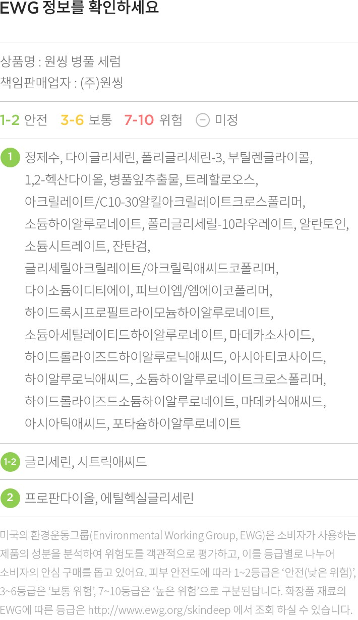 ・특징:병풀에서 유래한 4가지 성분이 피부 진정과 보호에 도움을 주는 세럼이에요.