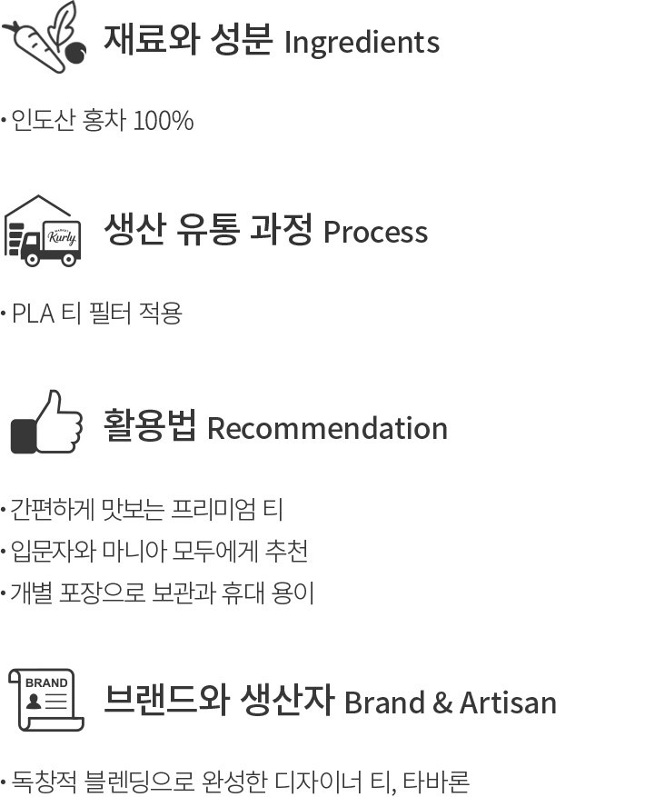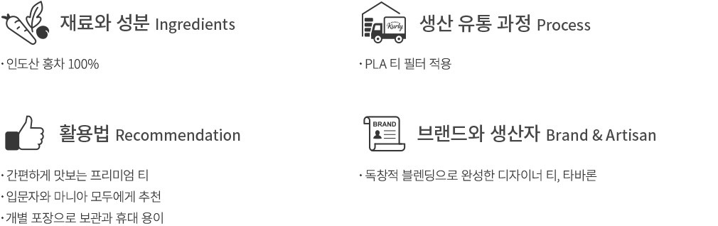티 소믈리에의 섬세한 블렌딩이 돋보이는 티 브랜드,타바론의 티백 세트를 소개할게요. 타바론의 베스트 티 중 하나인 NYC 브렉퍼스트는 달콤하고 부드러운 향미를 자랑하는 홍차랍니다. 입 안에 기분 좋게 머무는 쌉싸름한 마무리가 정통 홍차의 매력을 오롯이 느끼게 해 주지요. 원물의 형태를 최대한 살려 티백에 담아냈기에 한층 더 깔끔하고 깊은 맛이 우러나요. 누구나 편안하게 마시기 좋으니,향긋하고 여유로운 티 타임을 즐겨 보세요.