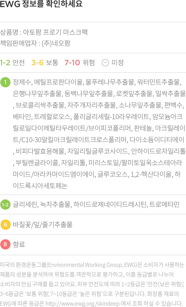 프로기 마스크팩・용량:1박스(15g X 5매)