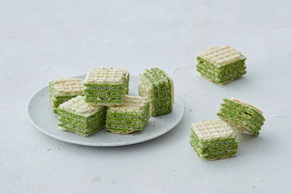 글로벌 차 브랜드,오설록이 선보이는 그린티 웨하스를 만나보세요. 바삭한 웨이퍼 사이사이 녹차 크림을 넣어 만들었답니다. 강하지 않은 녹차의 풍미가 웨이퍼와 어우러져 계속 손이 가지요. 한 입 크기로 아담하게 만들어 하나씩 꺼내어 먹기도 좋고요. 아이스크림에 얹어서 드시거나 커피와 함께 즐겨보세요.