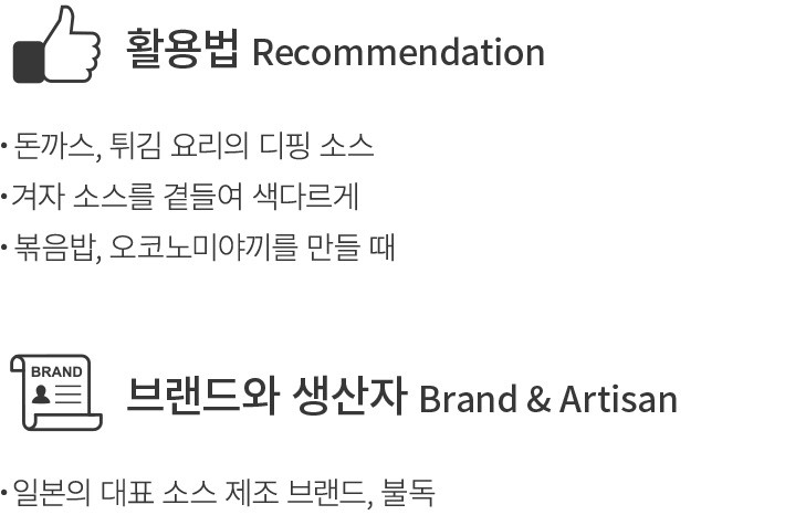100년 이상의 역사를 자랑하는 소스 브랜드,불독의 돈까스 소스를 소개할게요. 토마토 페이스트,사과퓨레를 비롯해 식초,향신료 등을 더해 만든 제품이랍니다. 새콤달콤한 채소와 과일 본연의 맛과 함께 진한 풍미가 느껴져 더욱 매력적이죠. 돈까스는 물론,각종 튀김 요리의 디핑 소스로 활용하면 느끼함은 잡아주고 풍성한 감칠맛을 즐길 수 있답니다. 볶음밥이나 오코노미야끼를 만들 때 활용해도 그 매력을 톡톡히 발휘할 거예요.