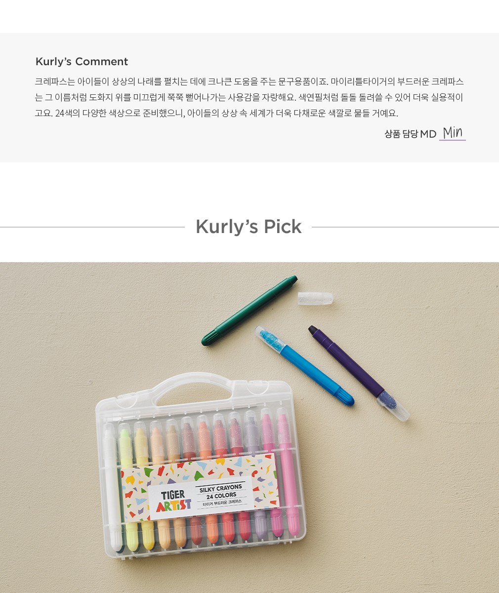 ・ 특징:매끄러운 사용감의 크레파스입니다. 색연필처럼 돌돌 돌려 쓸 수 있어 더욱 경제적이에요.