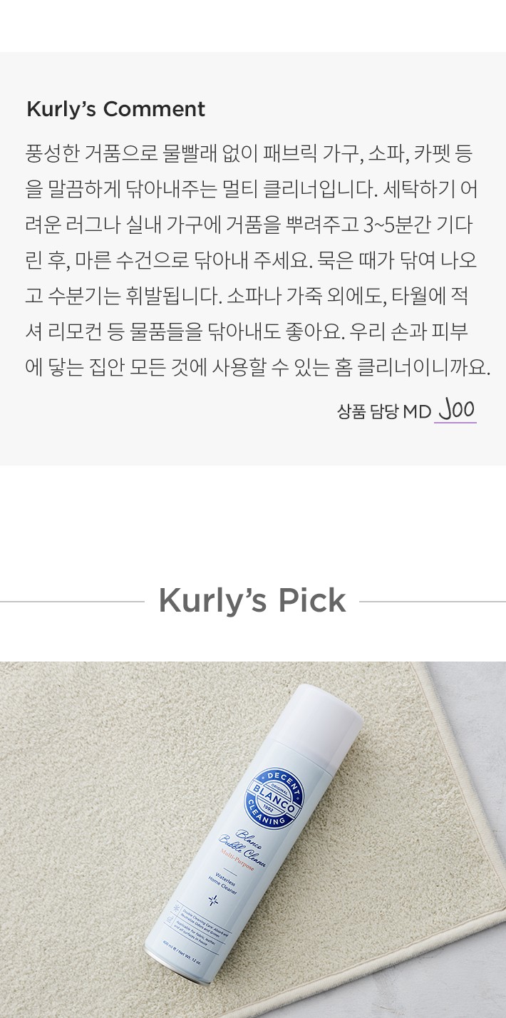・ 특징:세탁하기 어려운 패브릭,가죽,카펫,러그 등을 거품으로 깔끔히 세척 해주고 휘발되는 버블 클리너입니다.