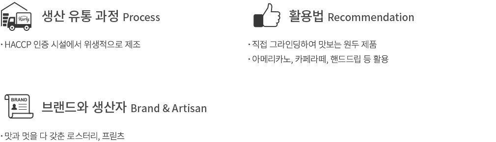 ・ 특징:카라멜과 오렌지의 향미가 적절히 조화를 이루는 싱글오리진 원두입니다. 부담스럽지 않은 정도의 산미로 부드럽게 즐기기 좋아요.
