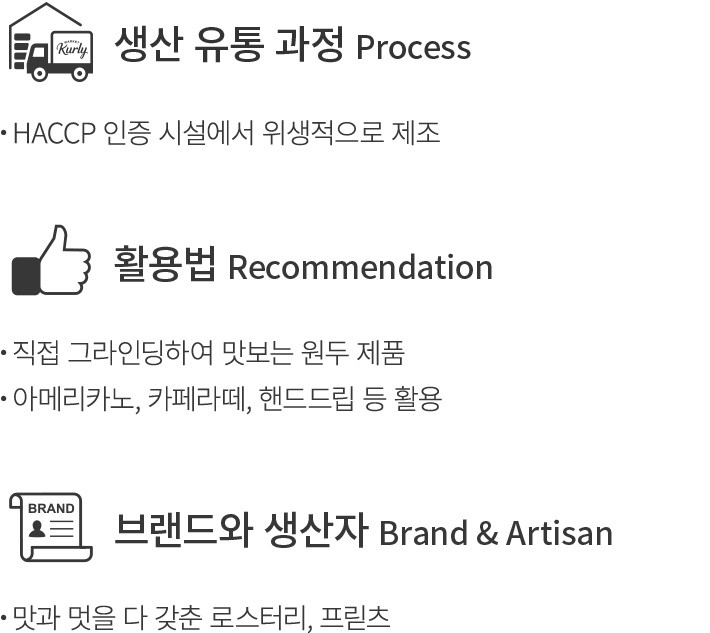 | 로스팅일 | 로스팅일로부터 15일 이내의 원두를 수령하실 수 있습니다. |