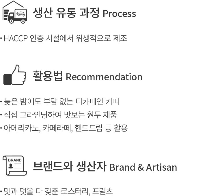 ・가공법:에틸 아세테이트 디카페인 프로세스