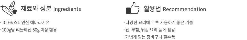주방의 필수품을 꼽자면 식용유가 빠지지 않을 거예요. 구이부터 볶음,튀김까지 사용처가 무한하지요. 사용 빈도가 높은 만큼 금방 소진되고,그래서 더 자주 챙겨두어야 하는데요. 이번에는 가정에서 사용하기 부담 없는 용량의 해바라기씨유를 준비했어요. 마트에 가지 않고도 집에서 편하게 받아 볼 수 있으니,꼭 필요한 순간 장바구니에 쏙 담아보세요.