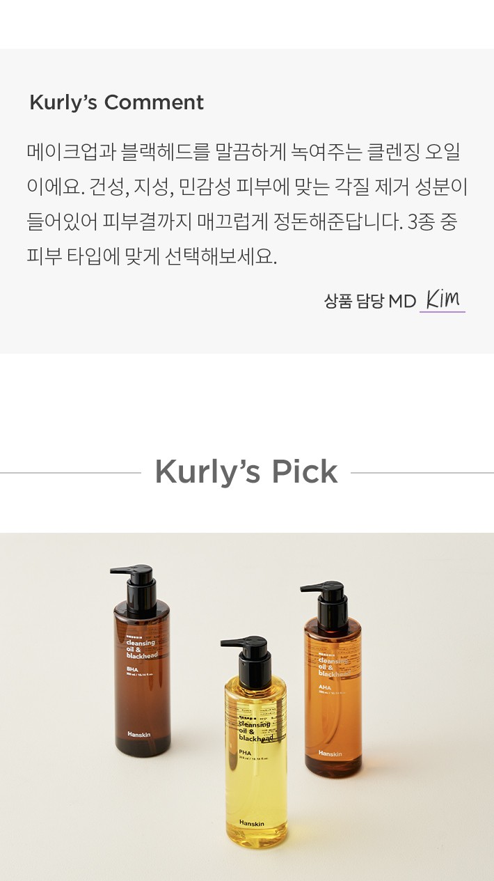 ・ 특징:피부 각질을 순하게 정돈해주는 클렌징 오일이에요. 민감성 피부에 특히 추천해요.
