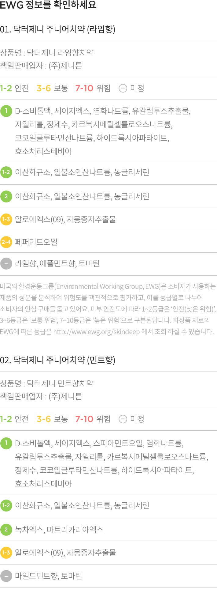 01. 닥터제니 주니어치약 (라임향)・ 중량:1개(60g)