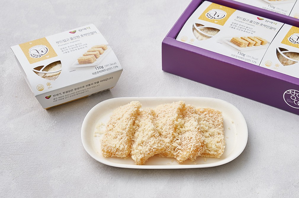 ?특징:달큰한 호박의 풍미와 쫀득한 식감이 매력적인 인절미입니다. 한 번에 먹기 좋은 양만큼 담아 완성했어요.