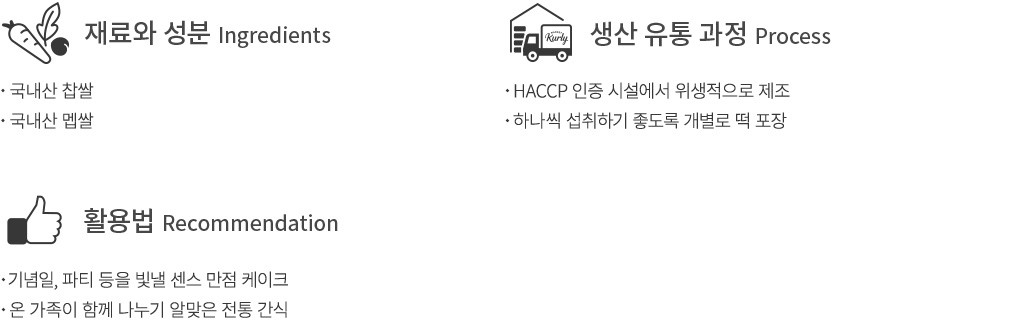 ?한 번 해동한 떡을 다시 냉동하면 맛이 떨어집니다. 가급적 드실 만큼만 꺼내어 해동하여 드세요.