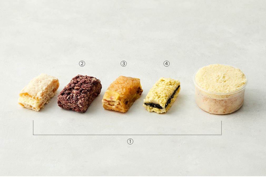 ?구성:①호박인절미 4개,②통팥찰떡 8개,③약식 4개,④녹두깨찰떡 5개