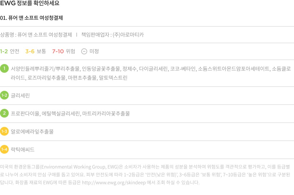 01. 퓨어 앤 소프트 여성청결제・ 용량:1개(250mL)