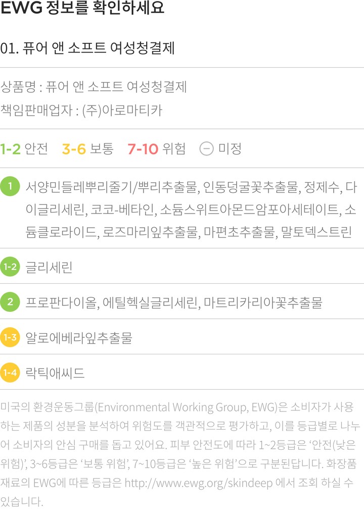 ・ 특징:민들레와 알로에 추출물을 담아 예민해진 Y존 피부 진정 및 보습에 도움을 줘요.