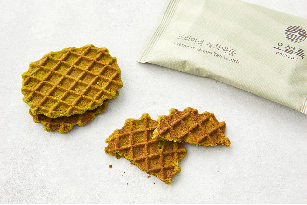 글로벌 차 브랜드,오설록이 선보이는 프리미엄 녹차와플을 소개할게요. 제주도 오설록 차밭에서 자란 녹차를 사용해 진한 향긋함이 특히 매력적인 와플 쿠키예요. 한 입을 먹어 보면,녹차의 쌉싸름함과 함께 담백하고 고소한 와플의 풍미가 입안을 가득 채운답니다. 많이 달지 않아 누구나 부담 없이 드시기 좋고요. 부드럽게 부서지는 식감까지 꼭 마음에 드실 거예요. 커피나 차에 곁들여 즐거운 티 타임을 완성해 보세요.