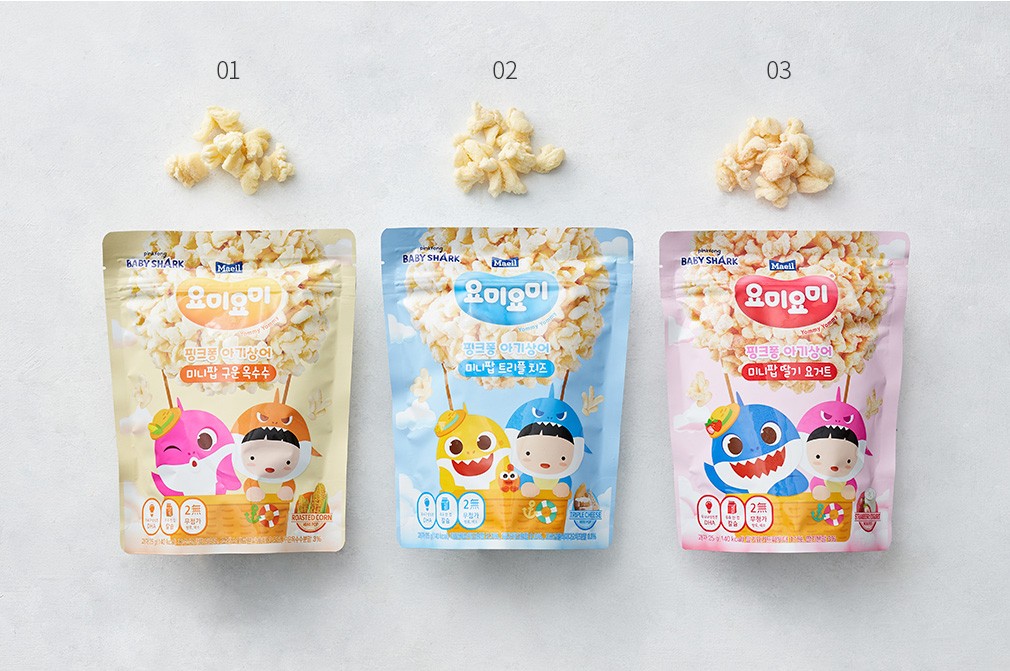 ・ 특징:국산 딸기 분말과 프랑스산 요거트 분말 등을 더해 완성한 딸기 요거트 맛 미니팝 스낵이에요.