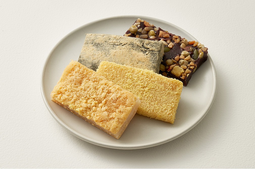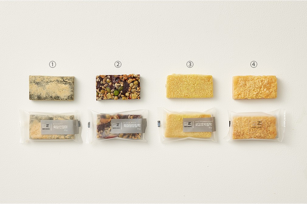 모듬 찰떡 선물세트? 구성:①쑥찰인절미,②흑미영양찰떡,③곶감호박찰떡,④소보로오븐찰떡