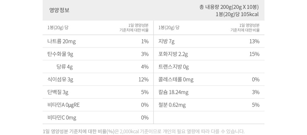 | 중량/용량 | 20g*10봉 |