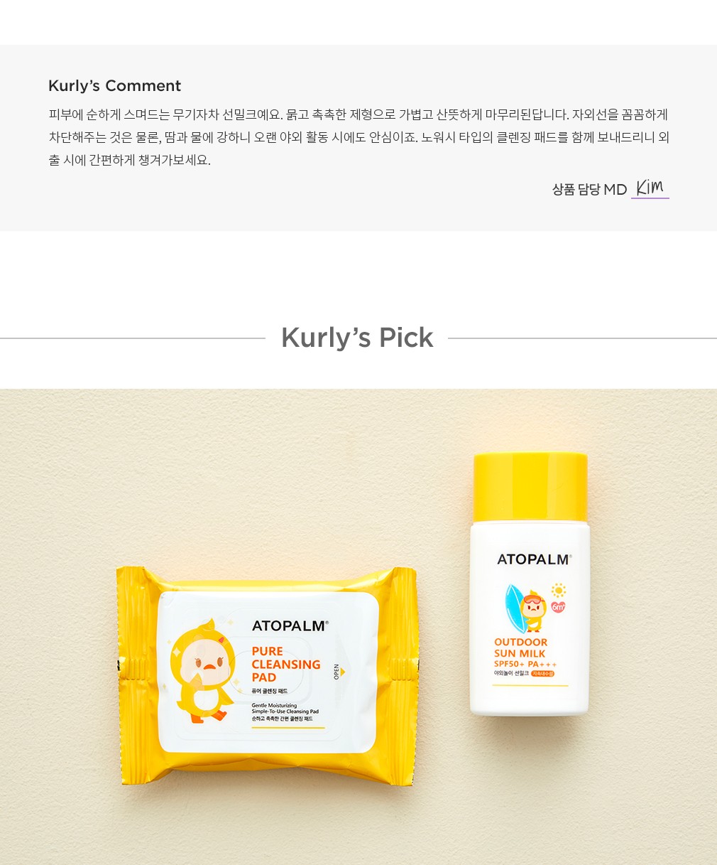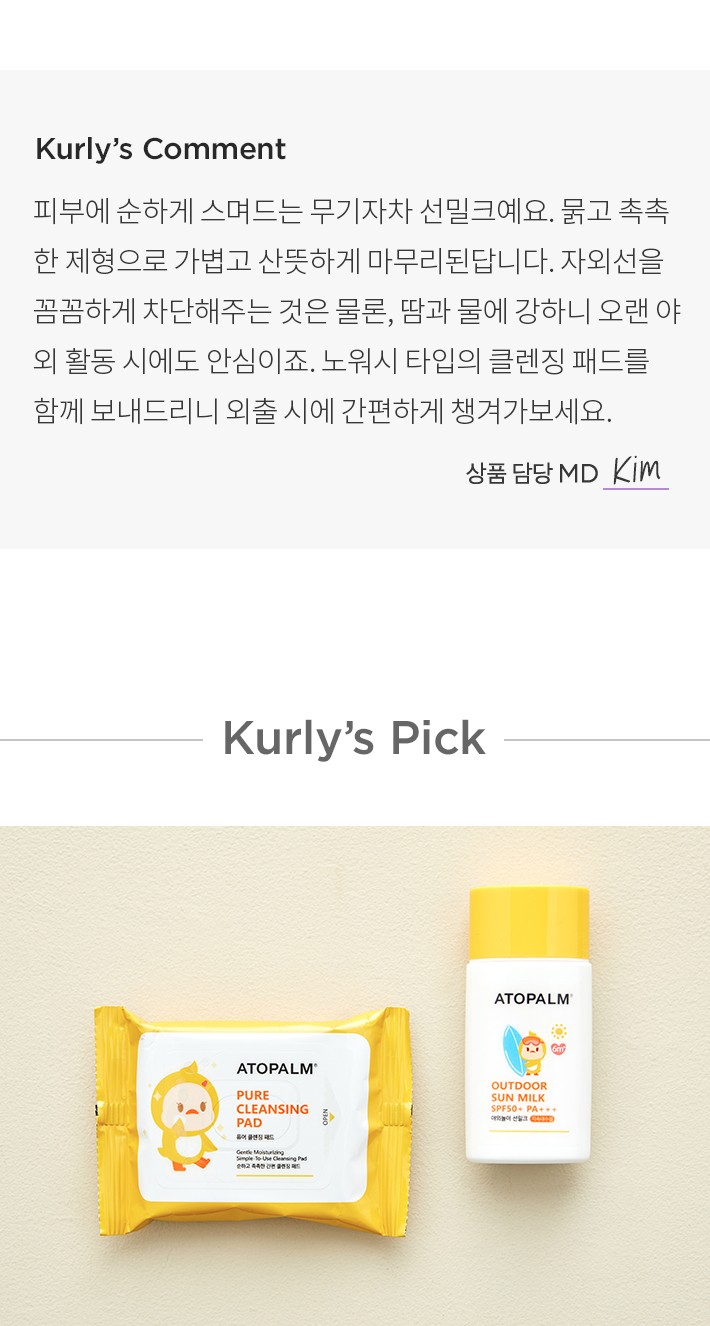 [아토팜] 야외놀이 워터프루프 선밀크 55g+클렌징패드 기획세트 (SPF50+ PA+++)