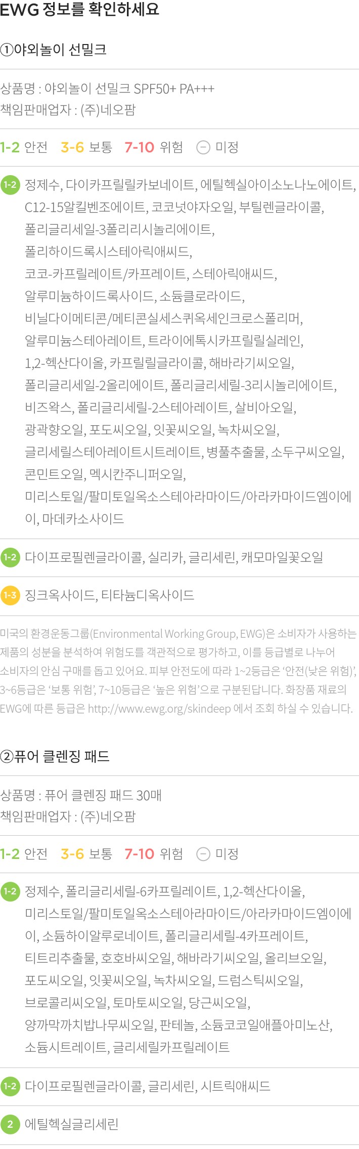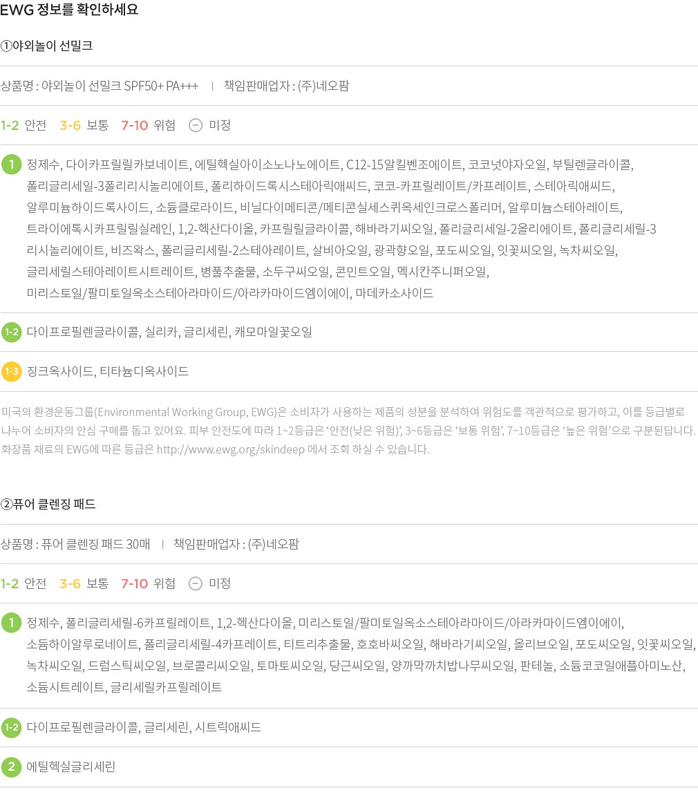 야외놀이 선밀크 기획세트・ 구성:①야외놀이 선밀크,②퓨어 클렌징 패드