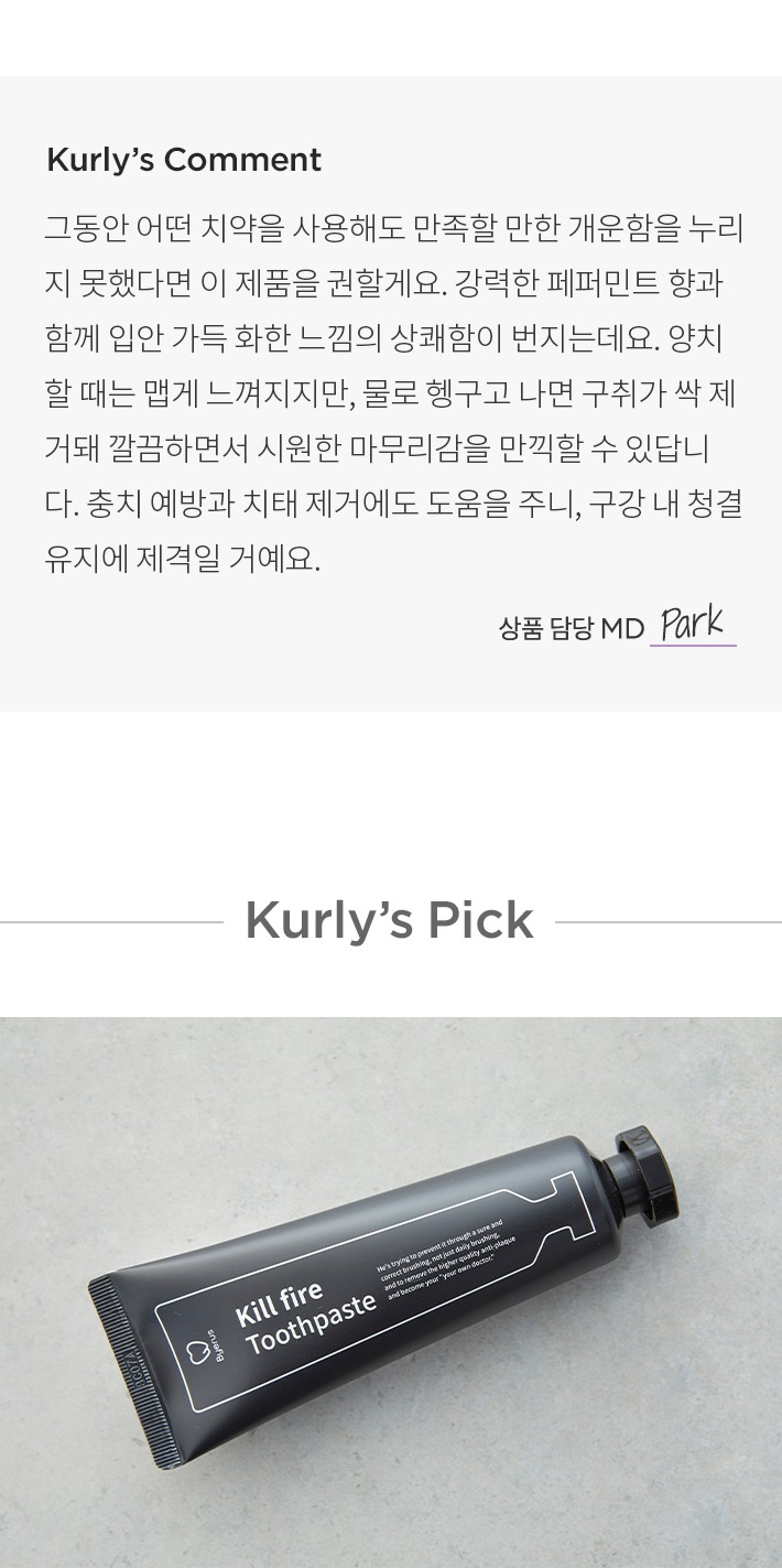 ・사용감:양치 내내 톡 쏘는 듯 강한 상쾌함을 선사해요. 맵다고 느낄 수 있어요.