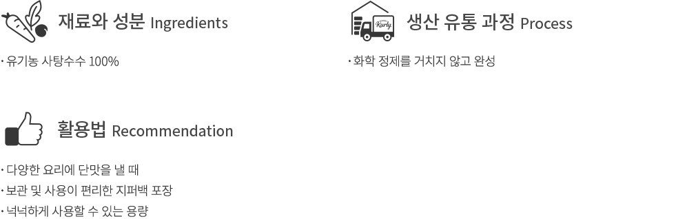 안내사항 | 유기농법으로 재배한 유기농 사탕수수수100%로 만들었으며,원심력을 이용하여 분리한뒤,화학정제를 거치지 않은 설탕입니다. |