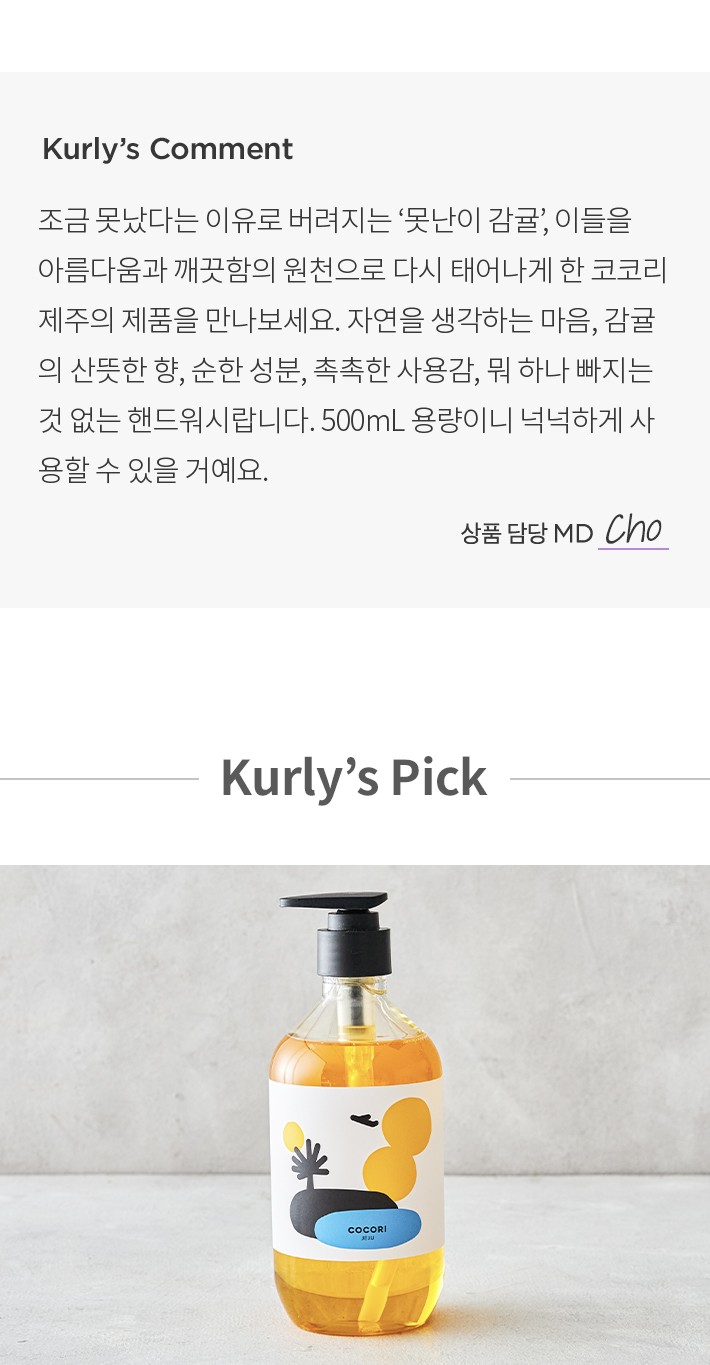 ? 특징:제주 못난이 감귤을 활용해 만든 핸드워시입니다.