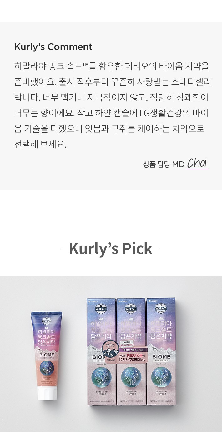 ・ 특징:상쾌함 끝에 은은한 달콤함이 맴도는 치약이에요.