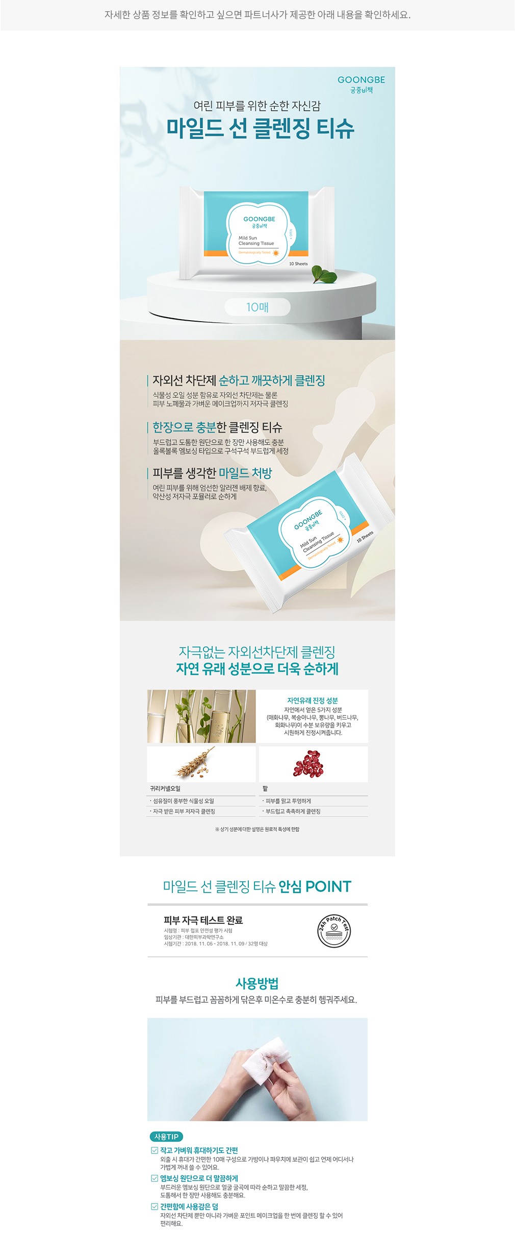 마일드 선 클렌징 티슈・ 개수:1박스(10매 X 6팩)