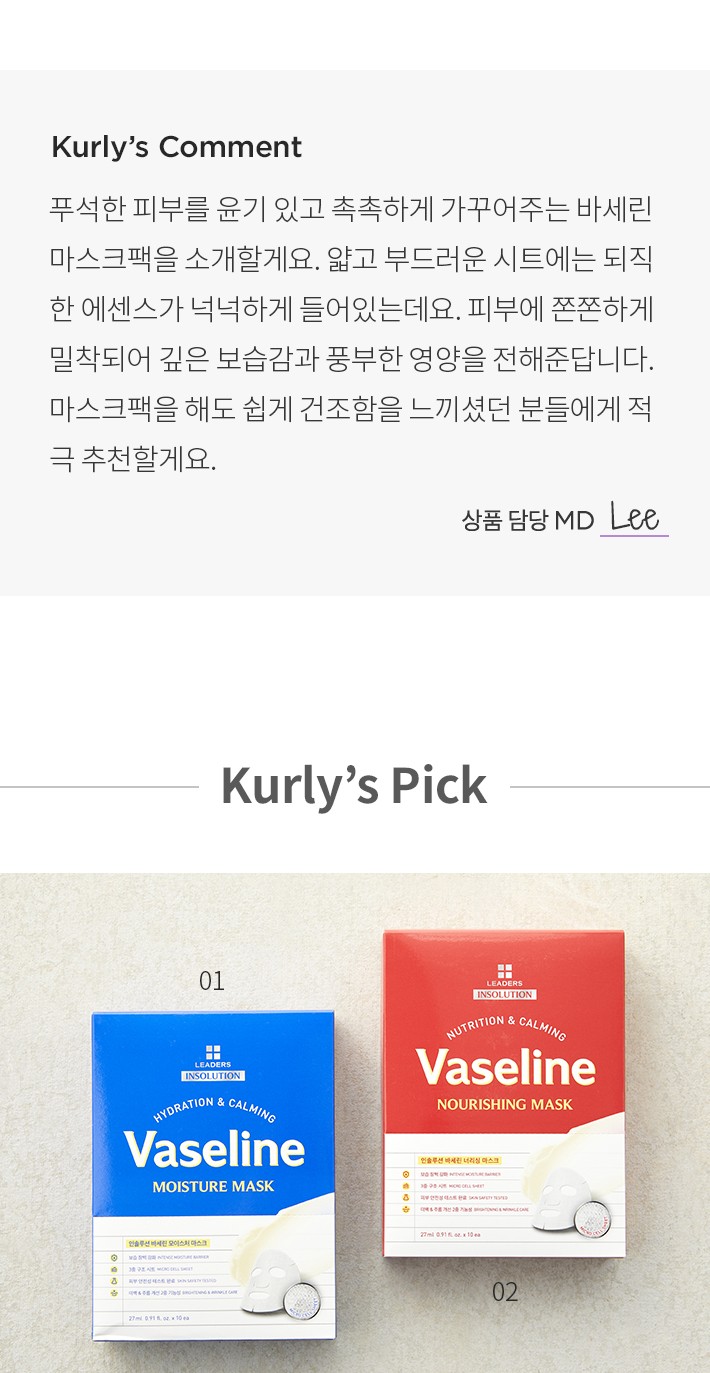 01. 인솔루션 바세린 모이스처 마스크・ 개수:1박스(27mL X 10매입)