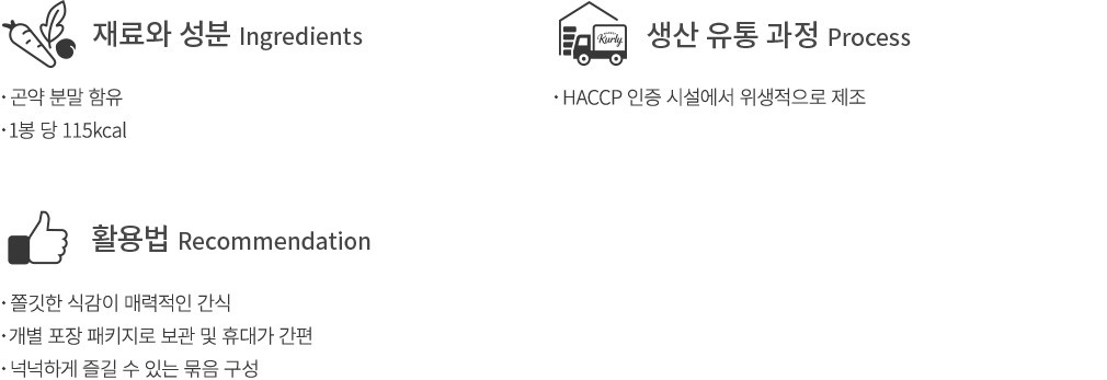 맛있게 즐기는 법?프라이팬:약불로 예열한 프라이팬에 쫀드기를 넣고 버터와 함께 살짝 구워주세요.