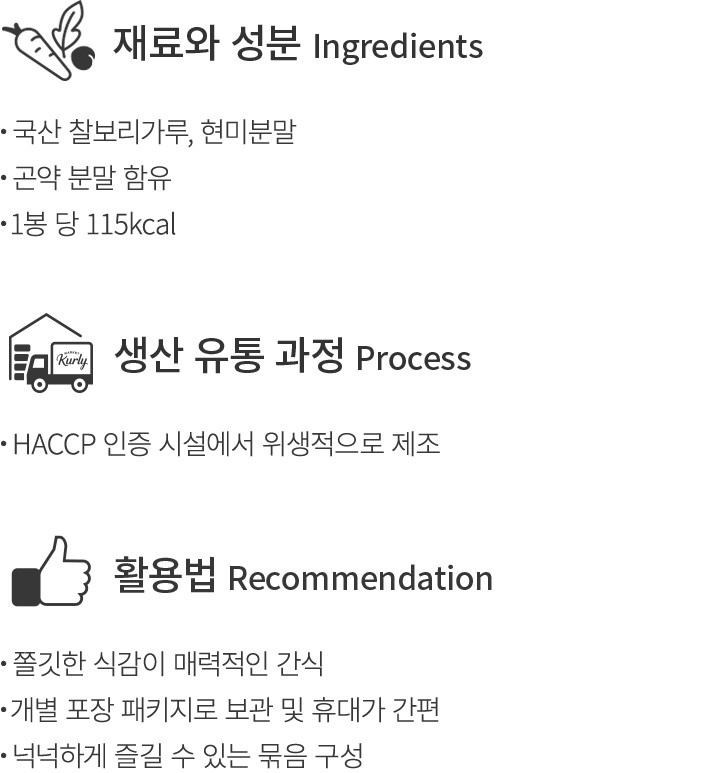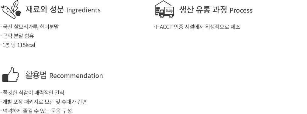 맛있게 즐기는 법?프라이팬:약불로 예열한 프라이팬에 쫀드기를 넣고 버터와 함께 살짝 구워주세요.