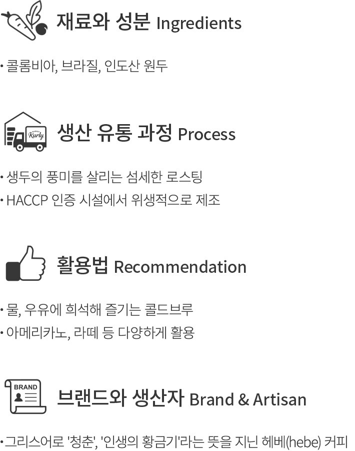 ・특징:고소하고 묵직한 풍미가 돋보이는 콜드브루예요. 산미가 거의 없어 부담 없이 즐기기 좋답니다.