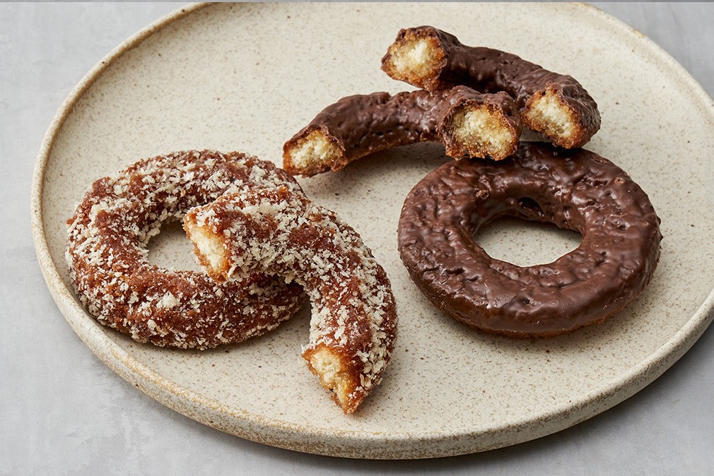 달콤한 약과를 색다르게 즐기고 싶다면,지금 소개하는 약과 도넛을 주목해 주세요. 약과의 쫀득함과 포슬포슬한 도넛의 식감을 함께 즐길 수 있는 제품이랍니다. 약과 특유의 녹진한 달콤함은 살리면서도,부드럽고 고소한 도넛의 풍미까지 놓치지 않았죠. 고소한 약과 도넛과 초콜릿 코팅을 발라낸 초코맛까지 두 가지로 준비했으니,온 가족이 즐기는 달콤한 간식으로 선택해 보세요. 커피나 차와 함께 즐기는 티 푸드로 내어도 좋을 거예요.