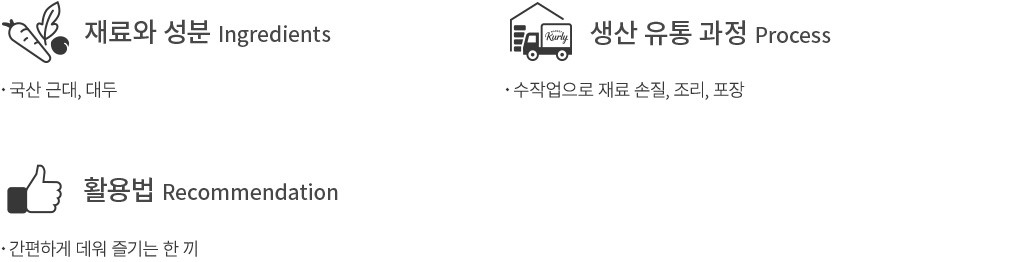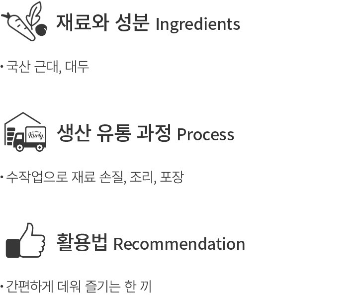 | 알레르기정보 | - 대두 함유 - 본 제품은 쇠고기,돼지고기,닭고기,난류(계란),조개류(전복,꼬막),오징어,고등어,새우,밀,땅콩,호두,우유,토마토를 사용한 제품과 같은 제조시설에서 제조하고 있습니다. |