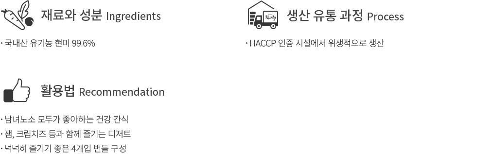 입이 심심한 순간에는 무언가 파삭파삭 씹을 수 있는 간식이 생각나지요. 자극적이지 않고 담백하게 즐길 수 있는 주전부리를 찾고 있다면 네이처오다의 현미 달칩을 주목해 주세요. 바삭바삭하면서도 구수한 맛의 달칩은 국내산 유기농 현미에 약간의 소금만을 더해 만든 제품인데요. 좋은 재료로 만들었기에 더욱 안심하고 먹을 수 있는 건강한 간식이랍니다. 크림치즈나 초콜릿 스프레드,과일 잼 등을 발라도 아주 잘 어울리니 다양하게 활용하기도 좋을 거예요.