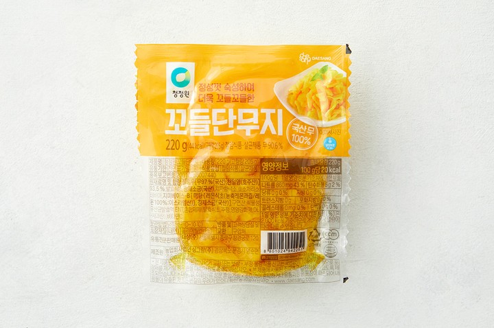 새콤달콤한 단무지는 언제 먹어도 맛있는 반찬이지요. 식초와 소금 등으로 알맞게 절인 청정원의 꼬들단무지를 소개합니다. 국산 무로 만든 단무지를 한 입에 맞는 크기로 잘라,부담 없이 먹기 좋은 소용량으로 포장했는데요. 야들한 식감이 좋아 그대로 즐겨도 맛있지만,참기름이나 고추 양념을 곁들여 감칠맛 나는 간단 반찬을 만들어도 참 좋을 거예요.