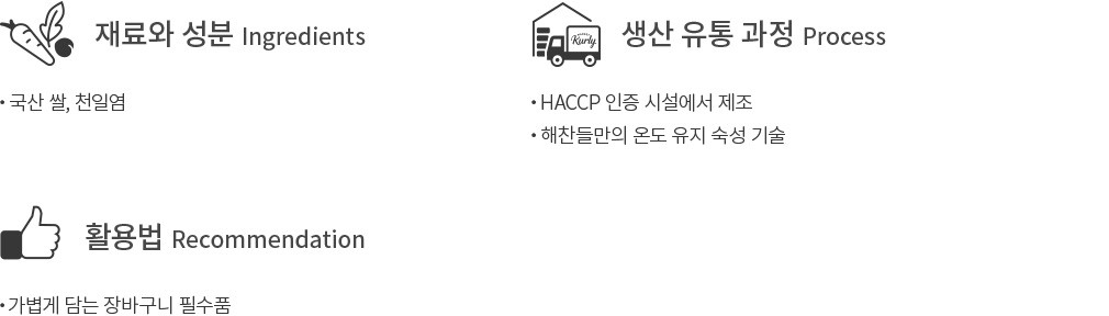 한식 요리의 필수품을 꼽자면 고추장이 빠지지 않을 거예요. 찌개부터 조림,비빔밥,떡볶이까지 사용처가 무한하지요. 지금 소개할 상품은 기존 해찬들 고추장에 비해 한층 더 매콤한 풍미를 자랑하는 매운 태양초 고추장인데요. 품질 좋은 태양초와 국산 쌀을 사용해 맛있게 매운 감칠맛을 지녔답니다. 가정에서 두고두고 사용하기 좋도록 넉넉한 용량으로 준비했어요. 마트에 가지 않고도 집에서 편하게 받아 볼 수 있으니,장바구니에 쏙 담아 보세요.