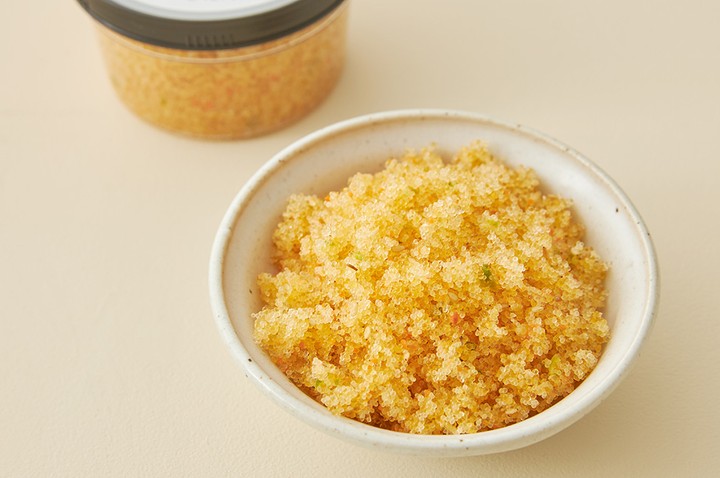 1958년부터 젓갈을 담가 온 김정숙 장인의 노하우를 담아 만든 동광젓갈의 비빔날치알을 소개할게요. 재료들을 먹기 좋게 다져 만들어 밥에 비벼 먹거나 고명으로 활용하기 좋은 젓갈이랍니다. 입안에서 날치알들이 톡톡 터지는 식감이 일품인데요. 국산 천일염과 머스타드 소스,참깨를 넣고 버무려 짭조름하면서도 고소한 감칠맛이 느껴지고요. 피망과 당근을 잘게 다져 넣어 심심하지 않답니다. 흰 쌀밥에 비벼 먹기만 해도 맛있지만,달걀찜에 얹어 먹거나 주먹밥,알밥의 재료로도 다양하게 활용해 보세요.