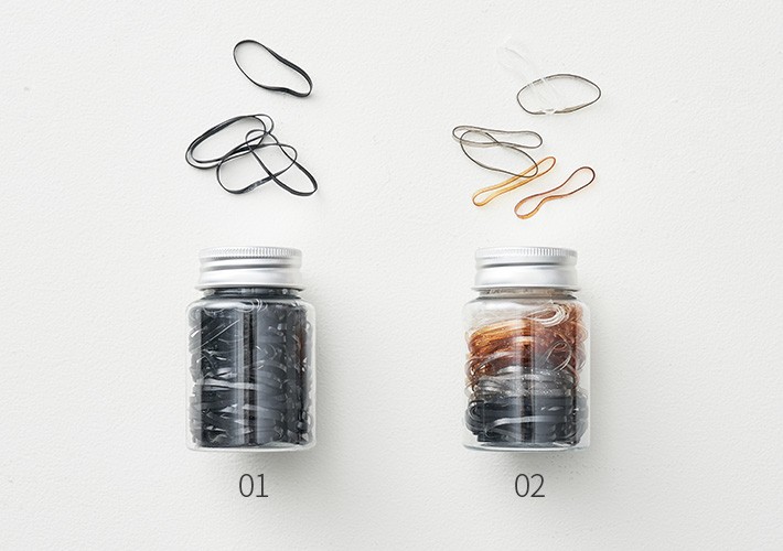 ・특징:투명부터 연한 브라운,그레이,블랙까지 다양한 색상으로 구성된 헤어 고무 밴드입니다.