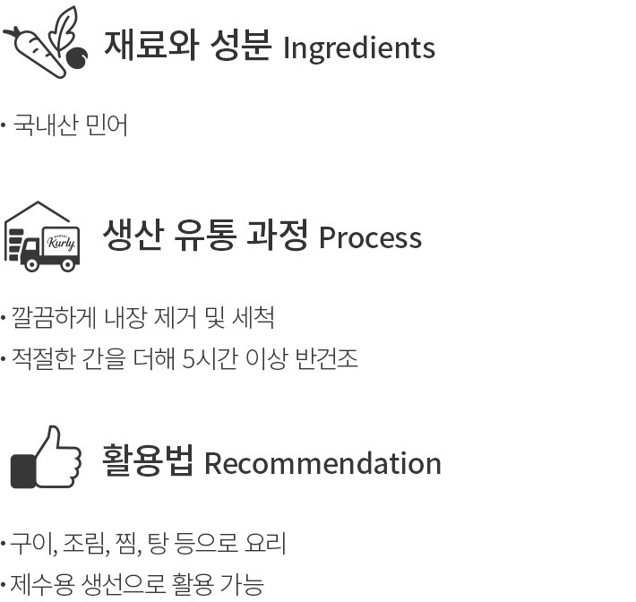 다미원은 숙성 및 건조,손질한 생선을 전문적으로 생산하는 수산물 기업이에요. 20여 년의 노하우를 기반으로,원물 선별부터,생산,유통에 이르기까지 꼼꼼하게 관리하고 있지요. 정직과 투명을 최우선 기업 이념으로 삼고 있기에,내 가족에게 권할 수 있는 안전하고 깨끗한 상품만을 소개하고 있답니다. 다미원이 선보이는 안전한 수산물,컬리에서 만나보세요.