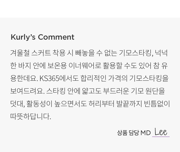 ?특징 :부드러운 기모 원단이 덧대어진 스타킹입니다. 허리부터 발끝까지 모두 감싸주는 디자인이에요.
