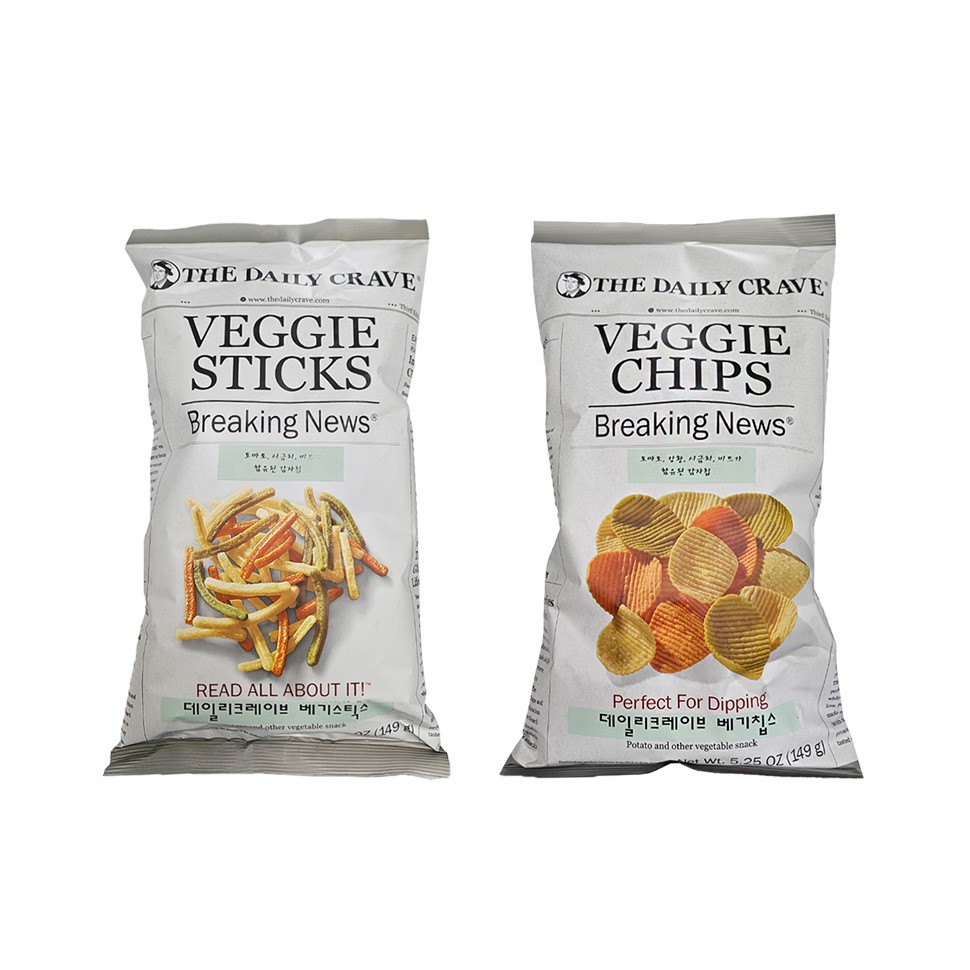 밀가루 없이 감자,토마토,시금치,비트 등의 분말로 맛을 낸 데일리 크레이브의 베기칩스 &스틱을 소개할게요. 합성 첨가물,경화 유지,색소가 들어있지 않아 안심하고 드실 수 있어요. 봉지를 열면 알록달록한 색깔의 스낵이 가득 들어있는데요. 각각 채소 본연의 풍미를 살린 담백한 맛과 바삭한 식감을 갖고 있답니다. 서로 다른 매력을 가진 베기스틱과 베기칩스를 준비했으니,취향에 따라 골라보세요.
