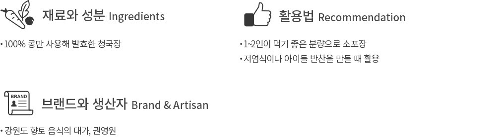 강원도 요리 대가가 직접,전통 방식으로 발효했다는 것만으로도 그 향과 맛이 짐작될 거예요. 컬리는 건강하게 만든 권영원 소담정찬의 무염 청국장을 소개할게요. 발효한 콩을 넣은 만큼 깊고 구수하면서도 담백한 맛을 지니고 있어요. 특히 돋보이는 점은 가염을 하지 않았다는 거예요. 함께 끓여 내는 재료에 따라 간을 조절할 수 있어 각자 입맛에 맞게 조리하기 알맞답니다. 평소 저염식을 먹기 위해 노력하거나 슴슴한 맛을 좋아하는 분들이라면 무염 청국장의 매력에 푹 빠질 거예요.